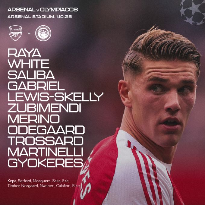 Arsenal will look to secure back-to-back victories in the Champions League when they host Olympiacos in their second match of the league phase. This is the Arsenal starting eleven. Arsenal team v Olympiacos The Gunners made an encouraging start to their campaign by defeating Athletic Club, a result that reinforced expectations of them being one […] The post Official Arsenal team to face Olympiacos – Odegaard starts appeared first on Just Arsenal News.